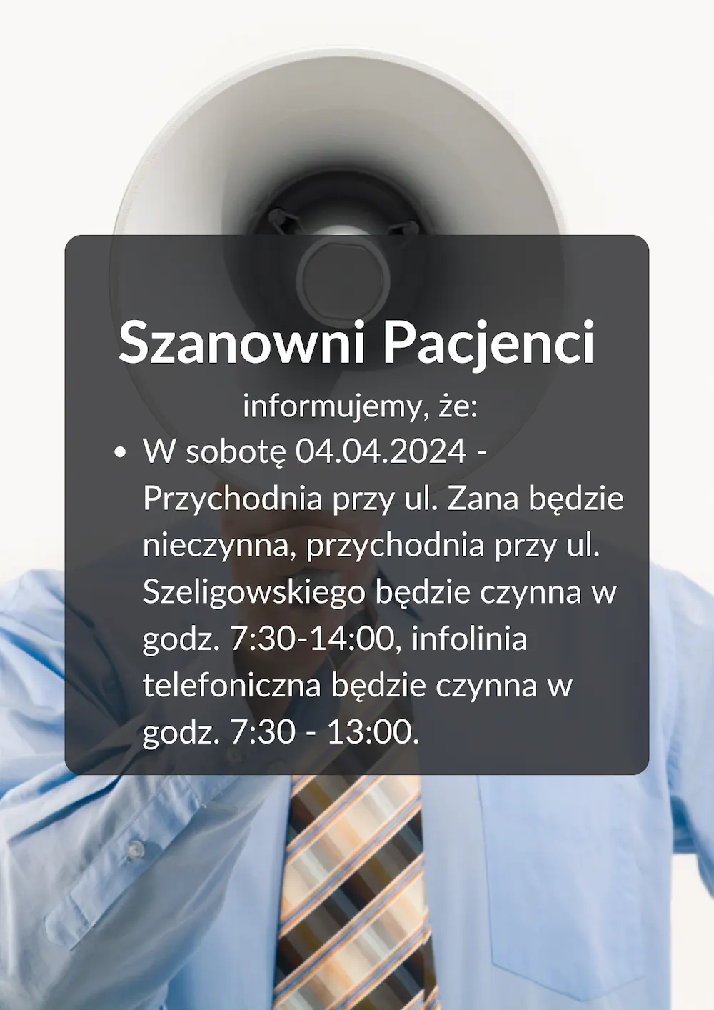 - lekarz przyjmuje w przychodni przy ul. Zana 29